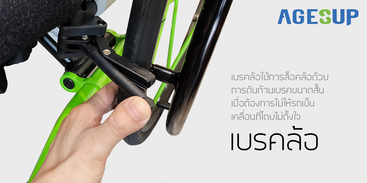 เบรคล้อใช้การล้อคล้อด้วยการดันก้านเบรคขนาดสั้น เมื่อต้องการไม่ให้รถเข็นเคลื่อนที่โดยไม่ตั้งใจ
