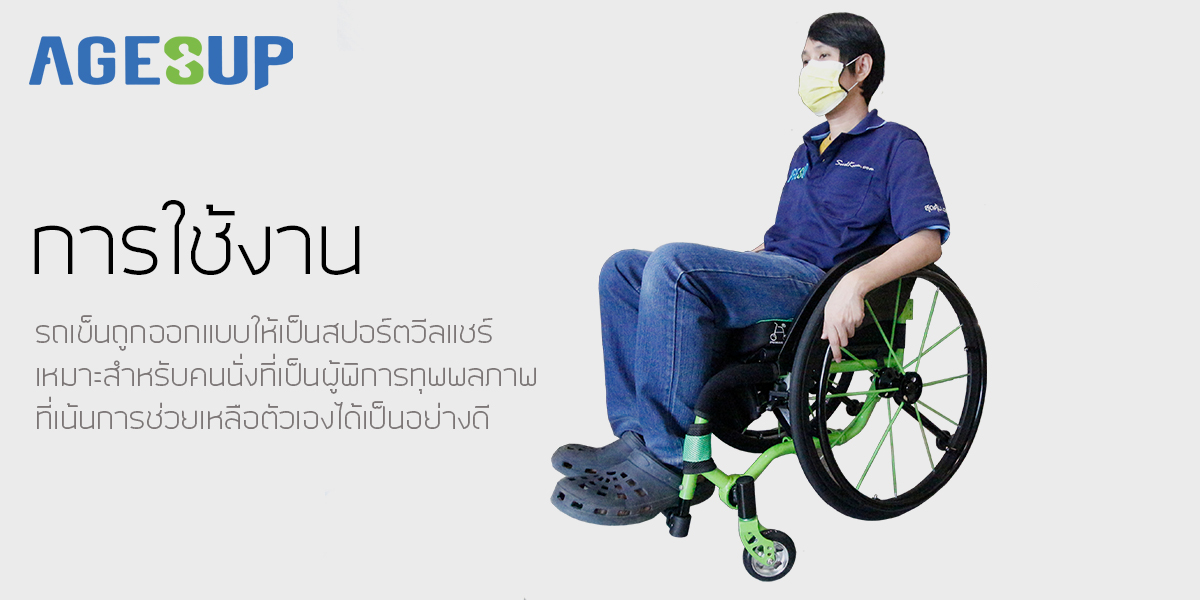 การใช้งาน รถเข็นถูกออกแบบให้เป็นสปอร์ตวีลแชร์เหมาะสำหรับคนนั่งที่เป็นผู้พิการทุพพลภาพ ที่เท้นการช่วยเหลือตัวเองได้เป็นอย่างดี