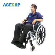 ที่พักแขน เปิดที่พักแขนได้สามารถพาคนป่วยขึ้นรถเข็นจากด้านข้างได้โดยง่าย